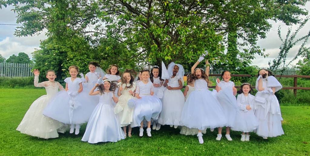 Congratulations to the second class girls who received their First Holy Communion in St. Matthew’s Church on the 17th May. Fr. Piaras MacLochlainn celebrated the ceremony. The girls looked beautiful and were delighted to welcome Jesus as their special friend.