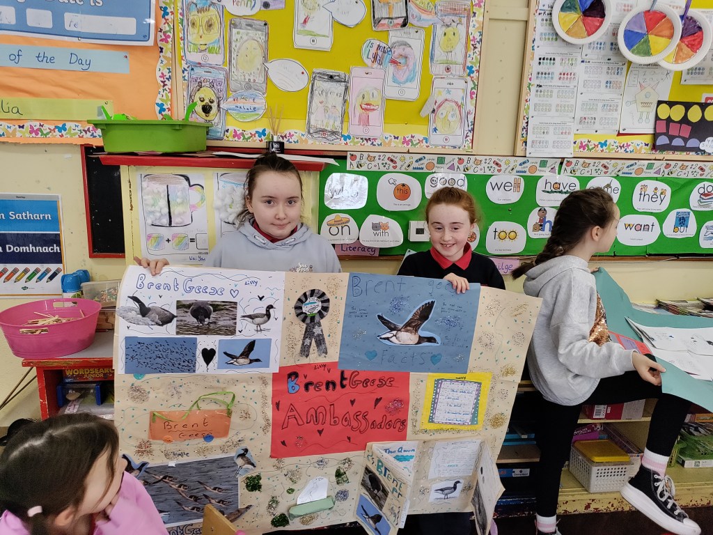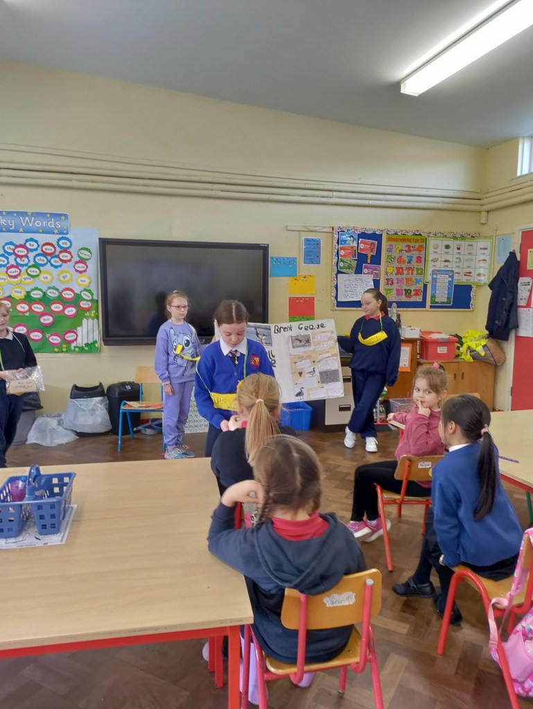 Fourth Class presented their project on the Brent geese to first class. They put an enormous amount of work into their research and presentations. First class were fascinated and learnt a lot about this unique bird.