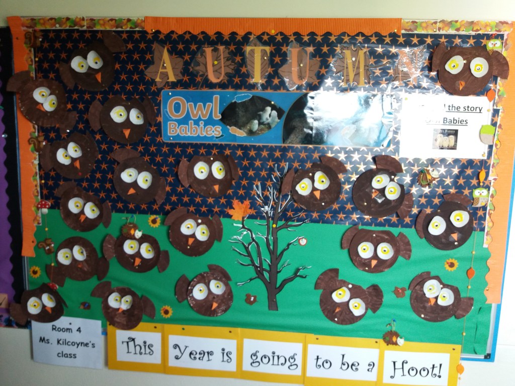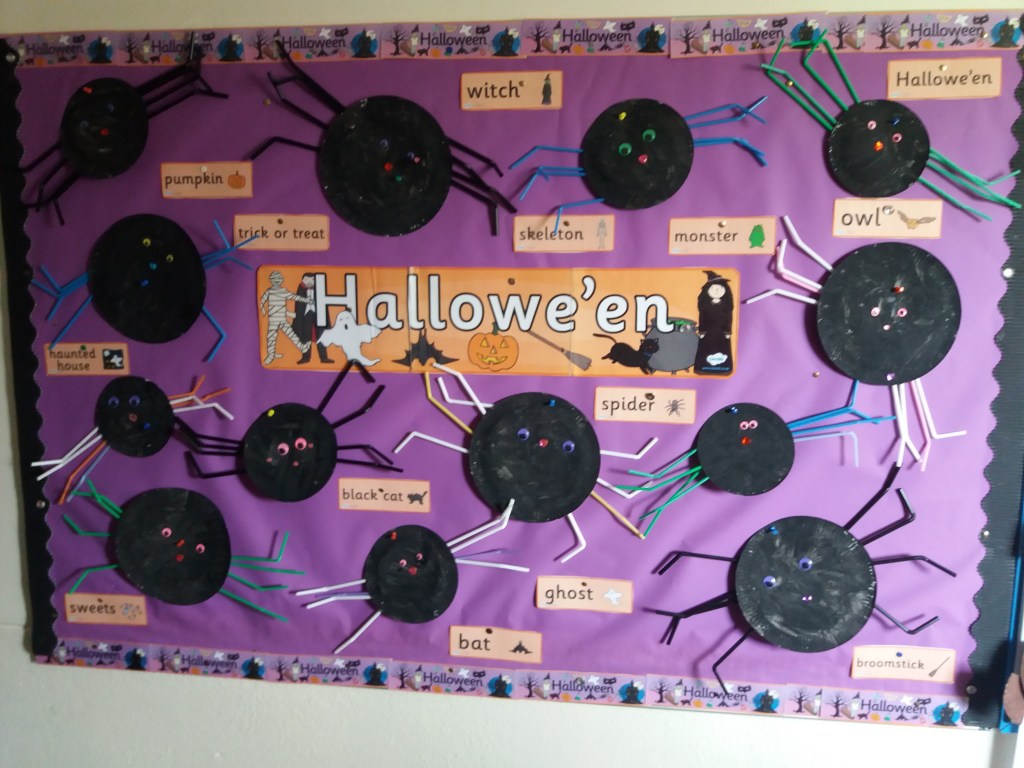 All the super children in Junior Infants have been doing amazing work since starting school in September! We loved learning all about Autumn and looking out for leaves, conkers, berries, apples and acorns outside. We have learned so many new rhymes; our favourite is Incy Wincy Spider. We made our own spooky but friendly spider for Hallowe’en.