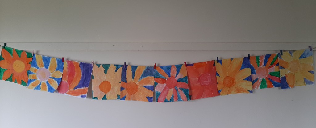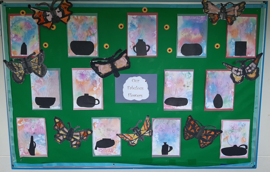 We have been learning all about the season of summer. We created some fabulous flowers using the print technique. Then, we painted some symmetrical butterflies.