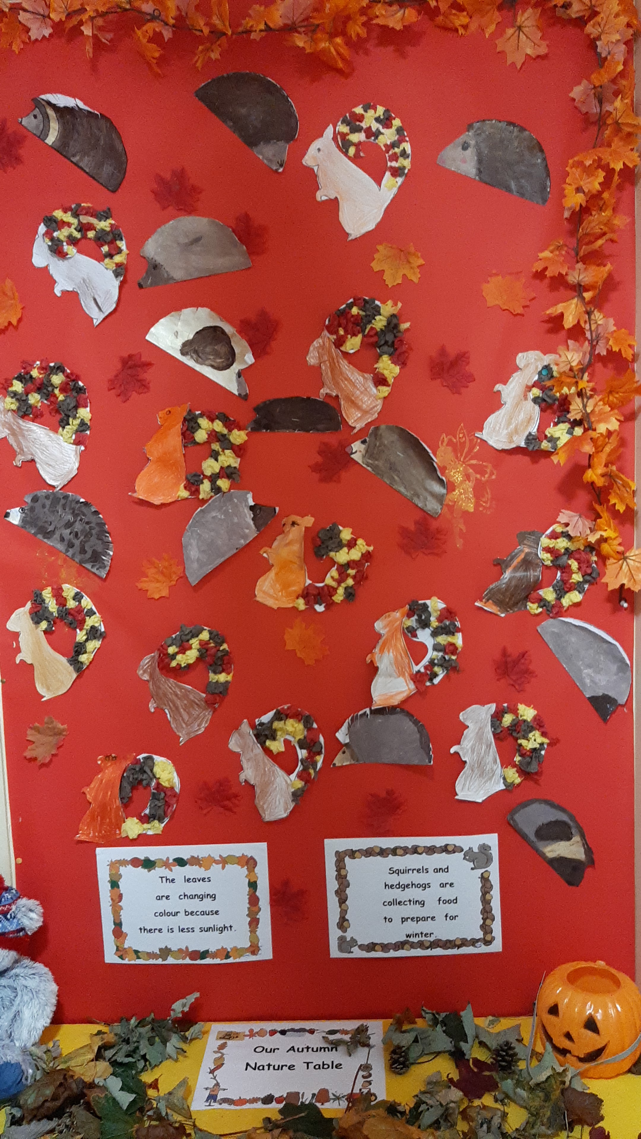 Second Class Room 16 have been very busy learning all about the season of autumn. We have been collecting signs of this season for our wonderful nature table. We have also been learning all about animals in autumn and why the leaves begin to change colour. You can read all about it here! You can also see our wonderful squirrels and hedgehogs.