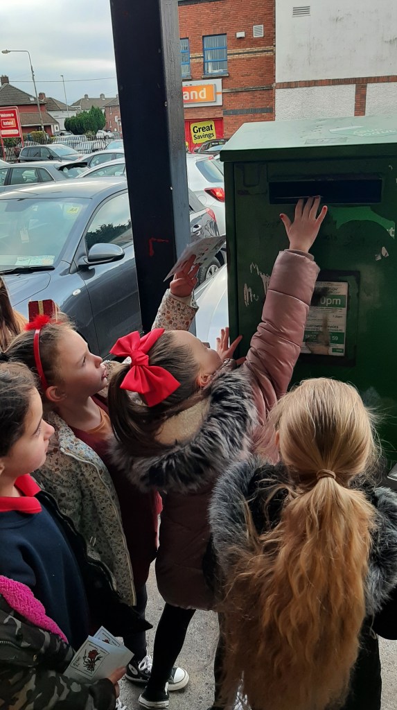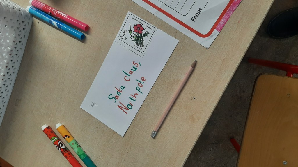 Santa Claus is coming to town so it is time to write those letters! Second Class had so much fun writing our letters to Santa. We also learned how to write an address and put a postage stamp on an envelope. Then, we walked to the local post office and sent our letters to Santa!