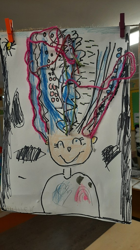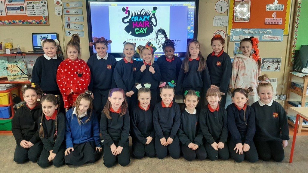 We had so much fun participating in the Crazy Hair Day fundraiser. We were even inspired to create some art! The Crazy Hair Day fundraiser was held to help raise funds for two boys in Mary Queen of Angels who were recently diagnosed with leukemia.