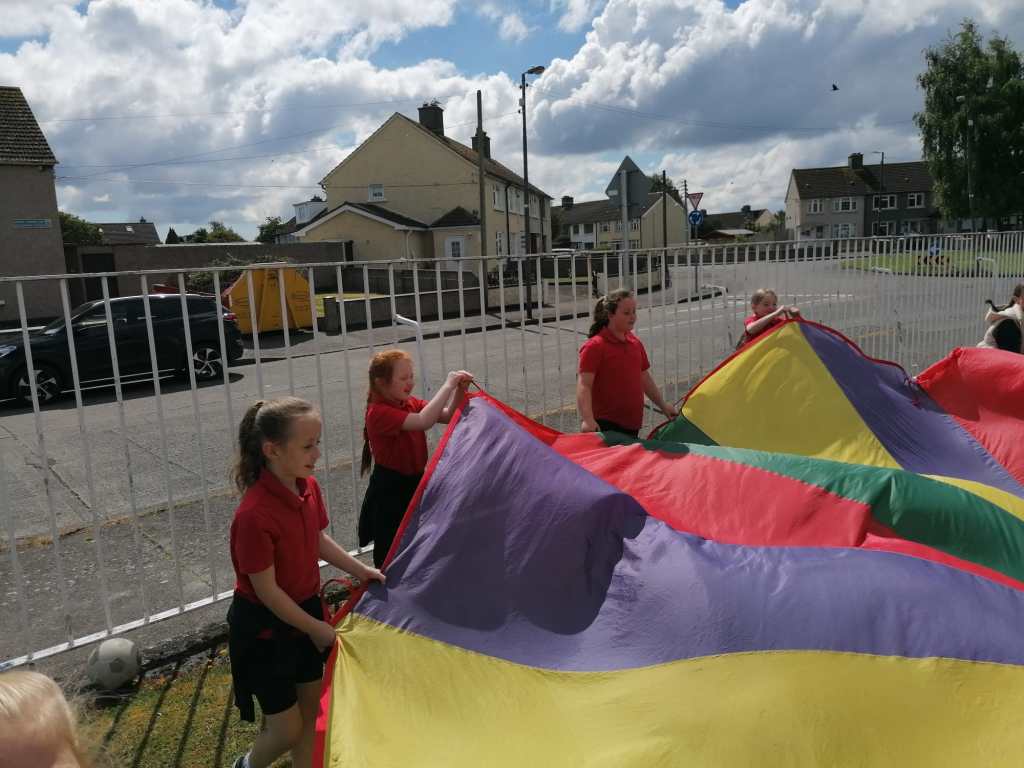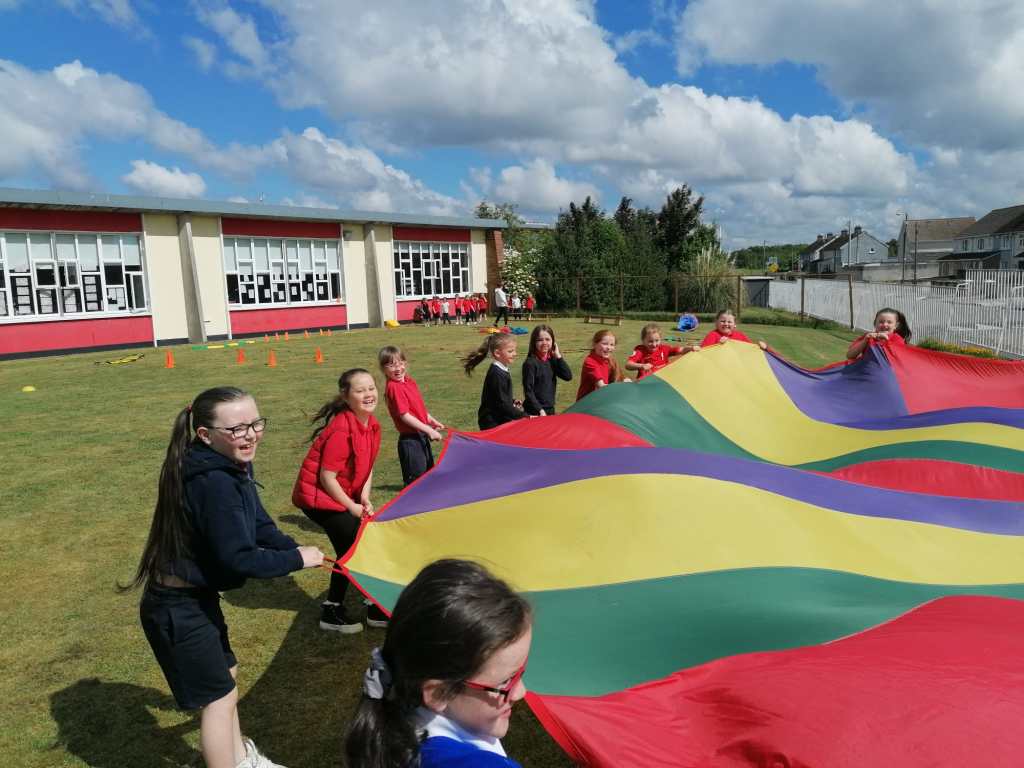 We had so much fun during active week. For our class Sports Day we all took part in : dancing, tennis, football, musical chairs, relays, a walk in the Gaels park, basketball, an assault course and more.